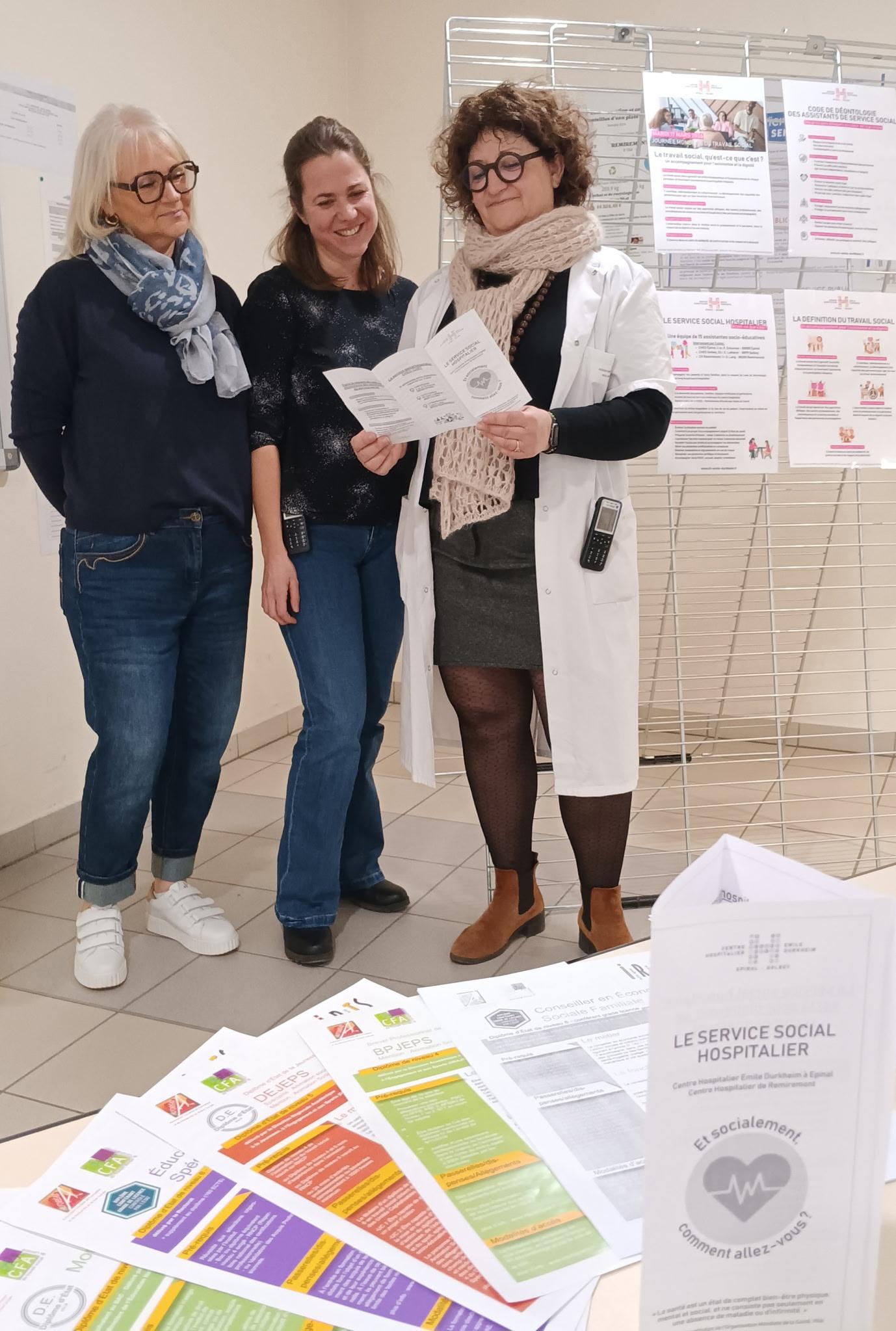 Installées dans les halls et services de Golbey et de Remiremont, elles ont présenté leurs missions, les métiers du travail social, les différentes formations, ainsi que les dispositifs d’aide pouvant être sollicités selon les situations.